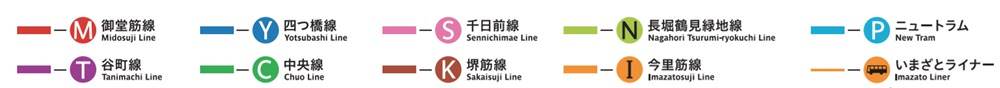 御堂筋线、谷町线、四桥线、中央线、千日前线、堺筋线、长堀鹤见绿地、今里筋线、New Tram